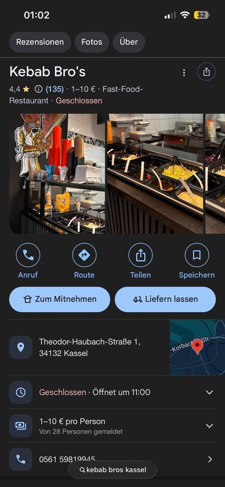 Zum Verkauf steht ein seit fast 3 Jahren bestehender Dönerladen in Kassel (Theodor-Haubach-Straße 1, 34132 Kassel).