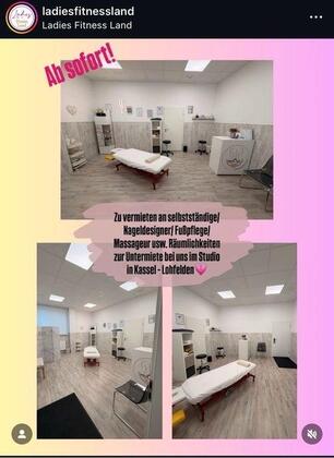 Schöner, heller Raum in einem Frauen-Fitnessstudio in Lohfelden zu vermieten. Ideal für Kosmetik, Nägel oder Massage.“